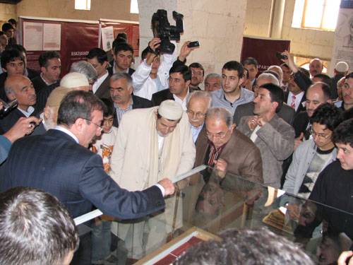 “Konuşmaların ardından serginin kurdelesini Bediüzzaman’ın talebelerinden Abdullah Yeğin, Said Özdemir ve Mehmet Fırıncı kesti.”