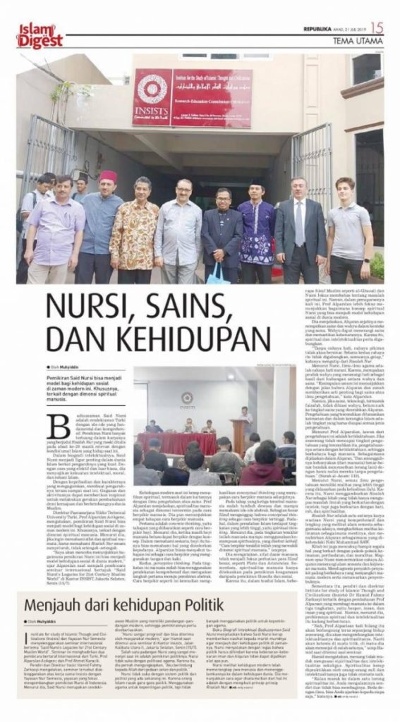 Özellikle haberde, İstanbul İlim ve Kültür Vakfı’nın 15 Temmuz’da Endonezya INSISTS (Islami Düşünce ve Medeniyeti Araştırmaları) Enstitüsü’nde düzenlediği “Uluslararası Bediüzzaman Said Nursi’nin 21. yüzyıl İslam Dünyasına Mirası Semineri” hakkında da yazılan bilgilendirici içerik dikkat çekiyor.